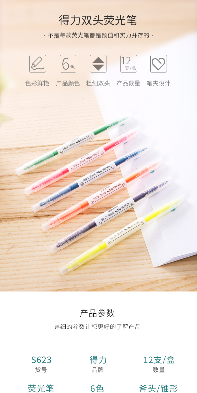 得力 S623 雙頭熒光筆 黃色 12支/盒