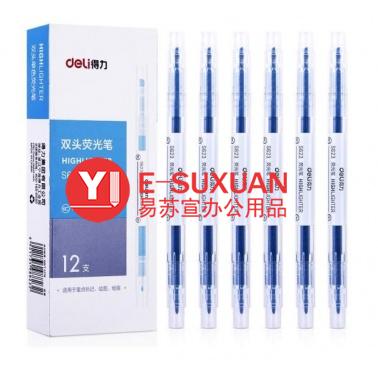 得力 S623 雙頭熒光筆 藍(lán)色 12支/盒