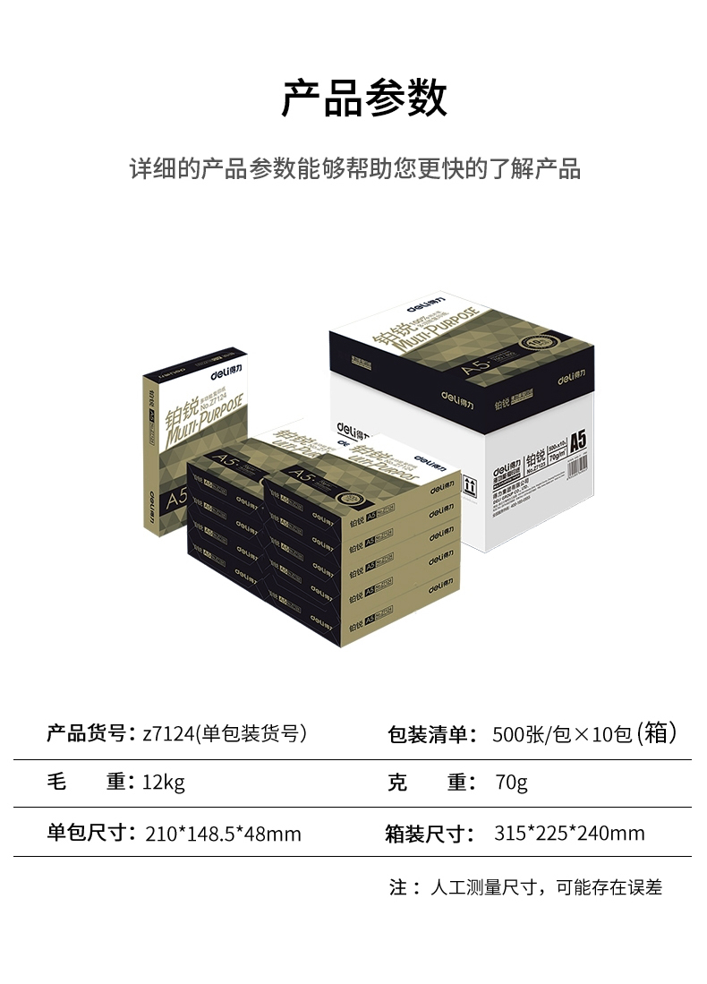 得力 70g 鉑銳復(fù)印紙 A5 白色 500張/包 Z7123