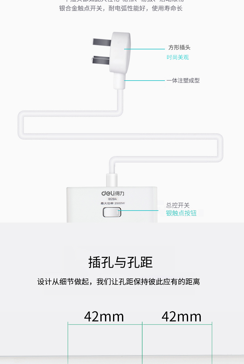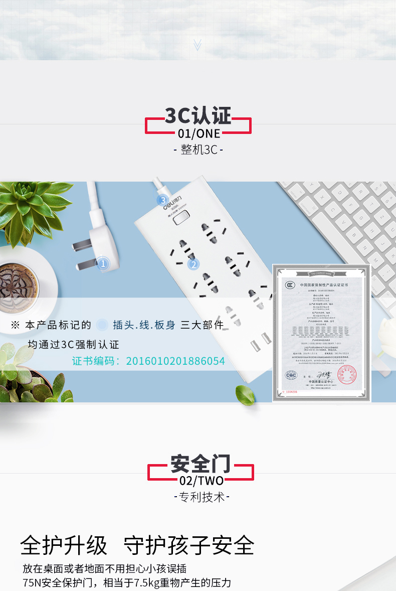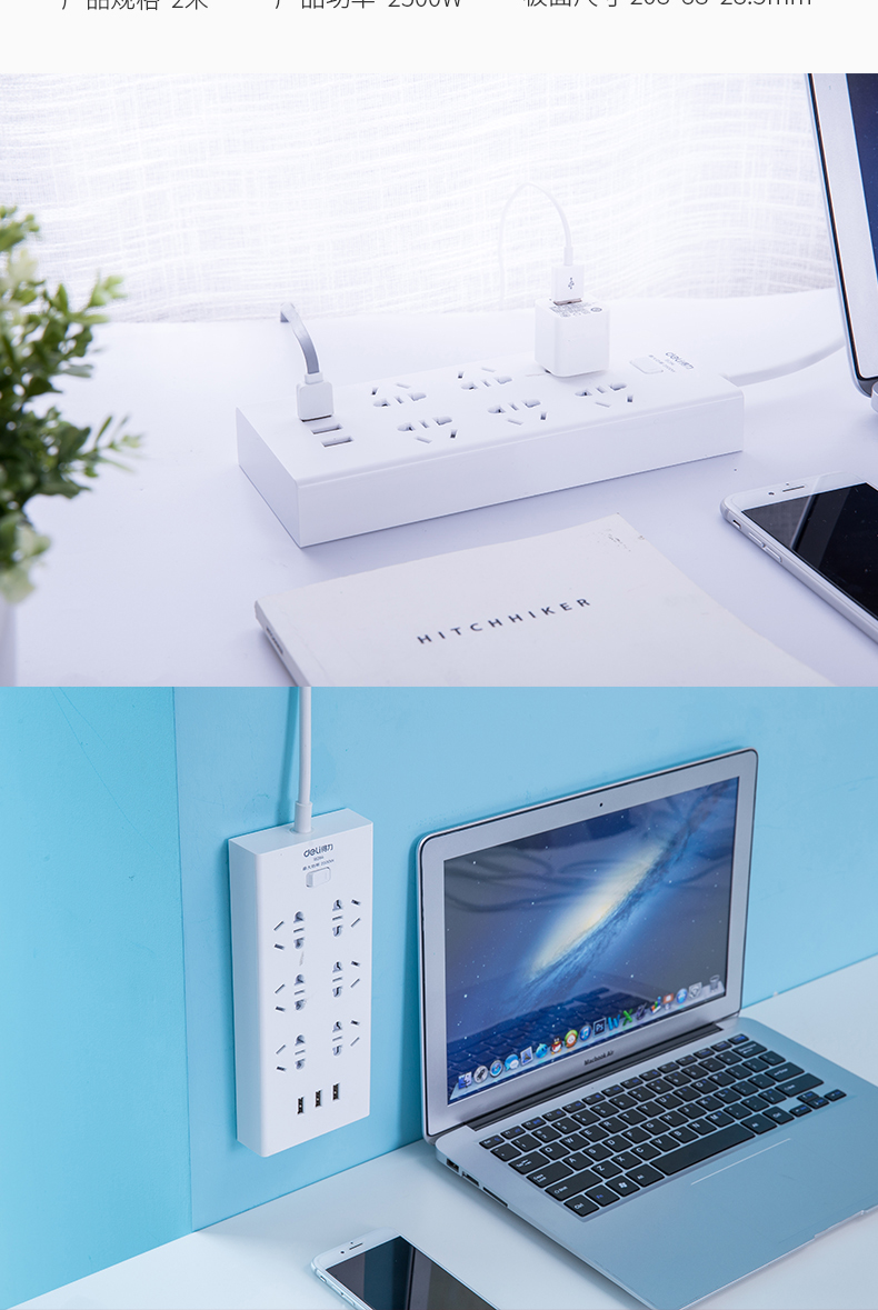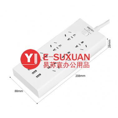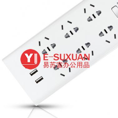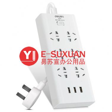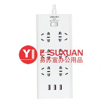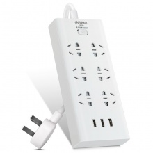得力 18284 單控六聯(lián)拖線板插座+3USB 白色 2米