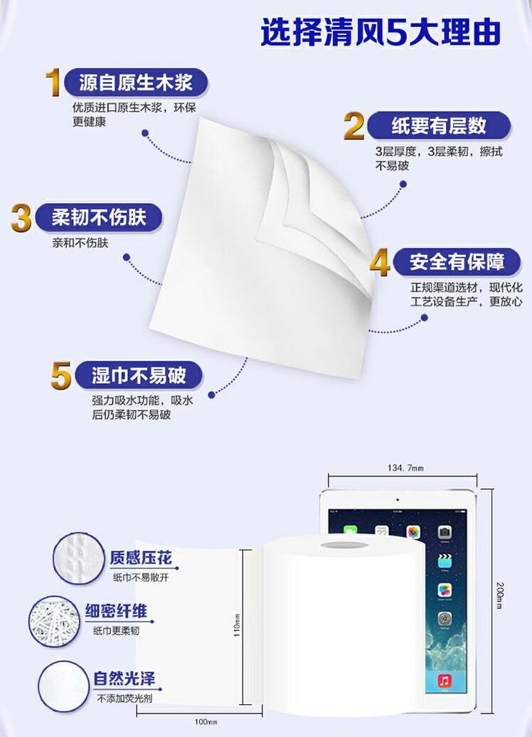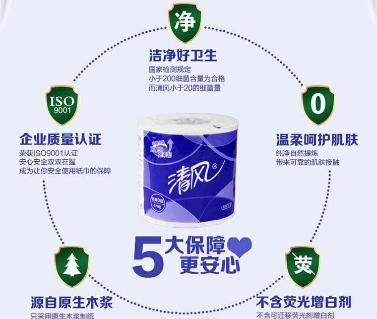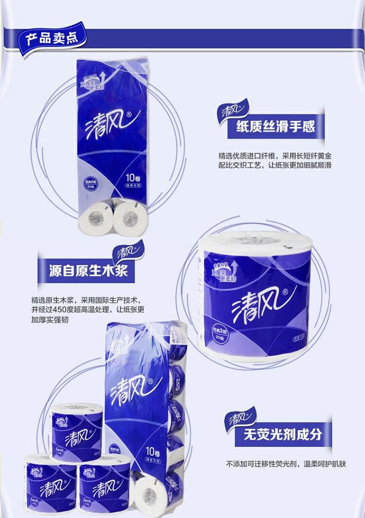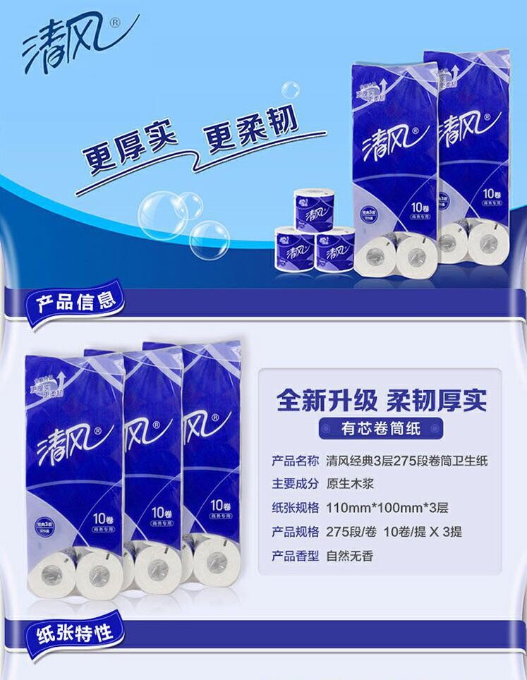 清風(fēng) B22AA5 三層原木有芯卷筒紙 275段 10卷/提