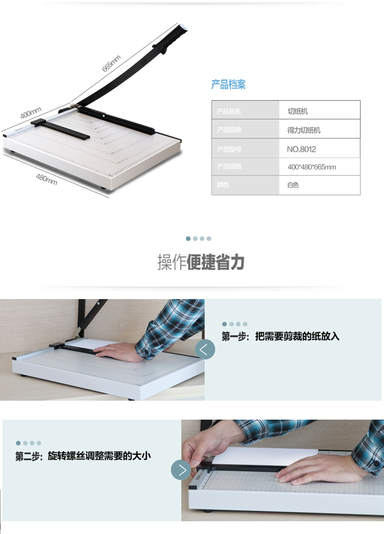 得力/deli 8012 鋼質(zhì)切紙機(jī) 460mm*380mm 白灰 A3