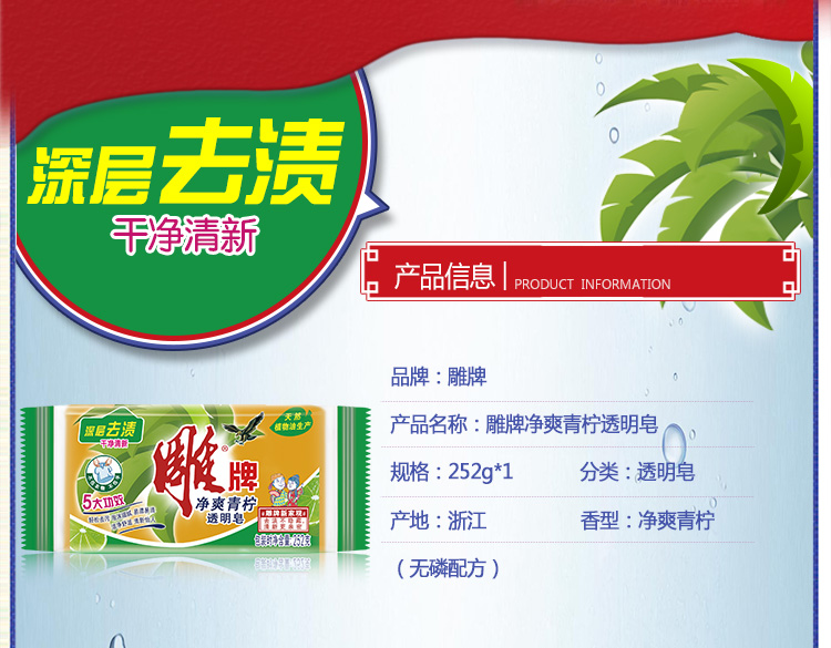 雕牌 青檸飄香透明皂/洗衣皂 252g 深層去漬 36塊/箱