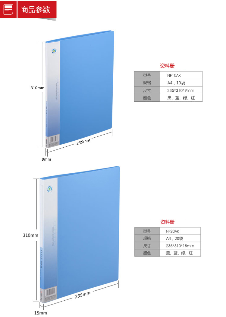 齊心 NF20AK 資料冊 A4 藍色 20頁