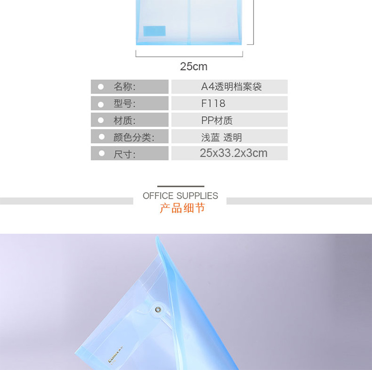 齊心 F118 透明繩扣式文件袋 A4 豎式