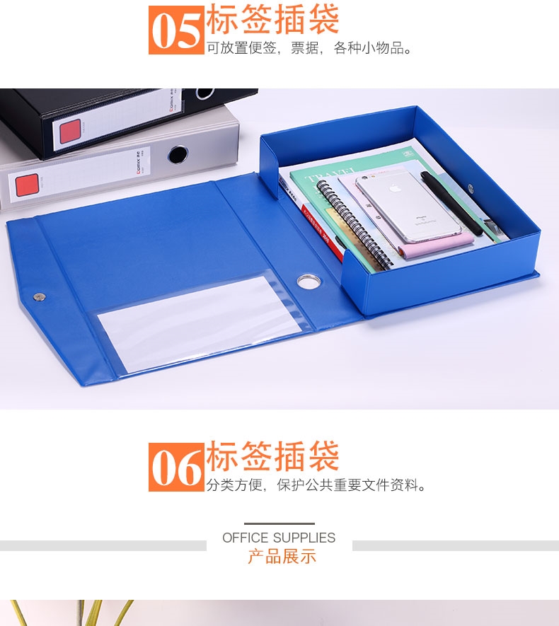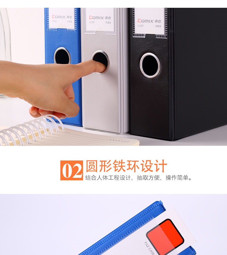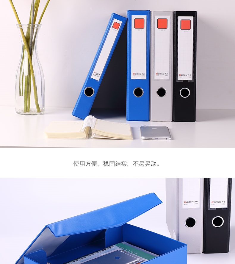 齊心(Comix) A1236 PVC磁扣式檔案盒 A4 黑色 55mm