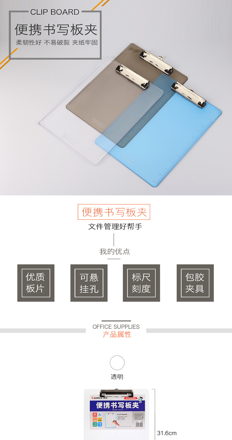 齊心(Comix) A744 便攜式書寫板夾 A4 透明