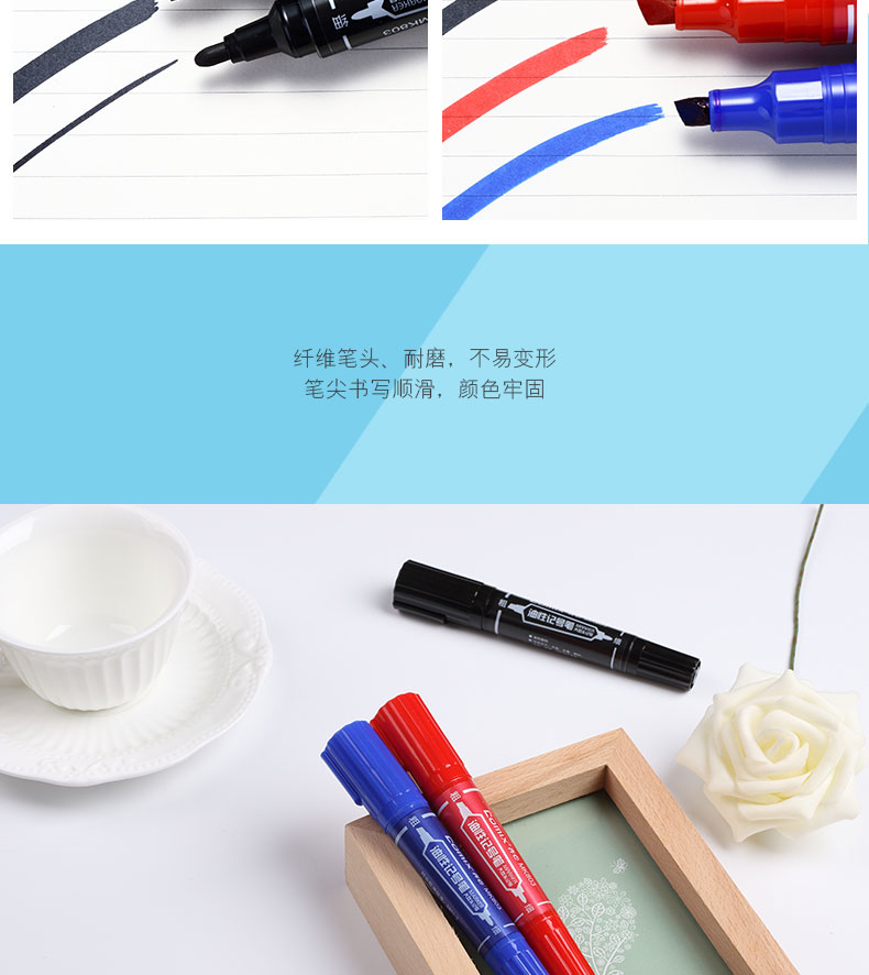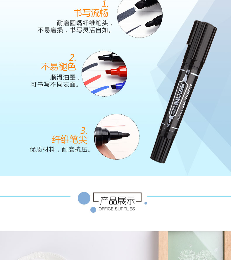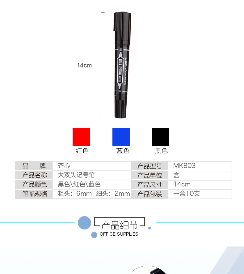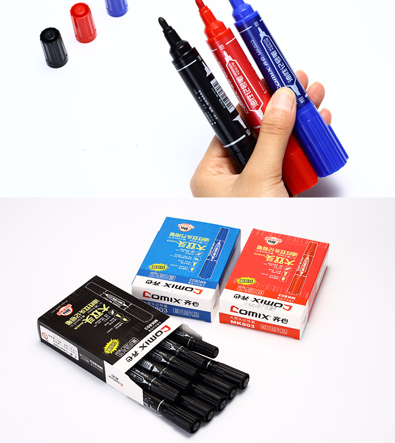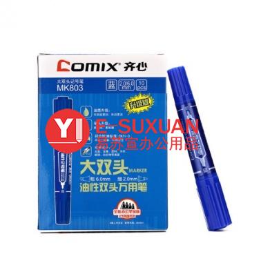 齊心(Comix) MK803 大雙頭油性記號筆 10支/盒 藍色