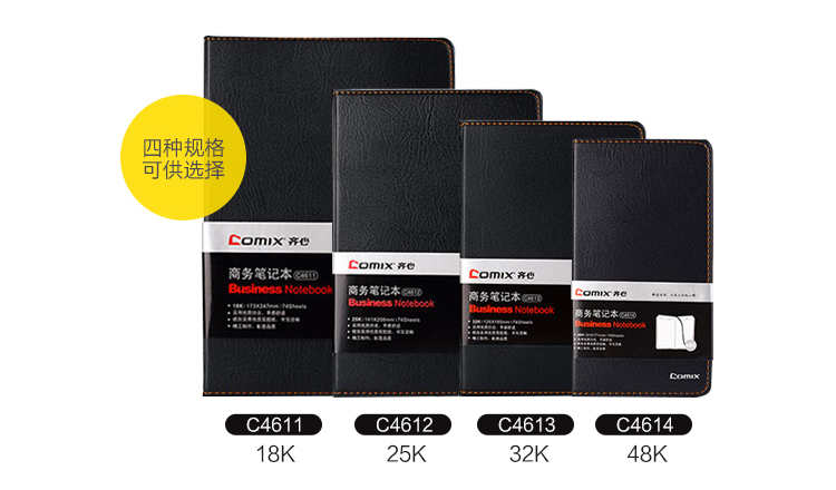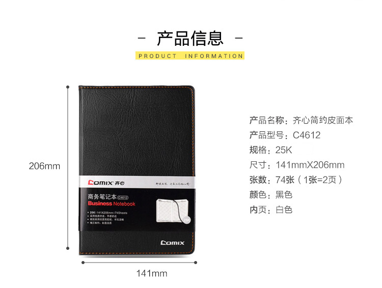 齊心(COMIX) C4612 皮面筆記本 25K 黑色 74張