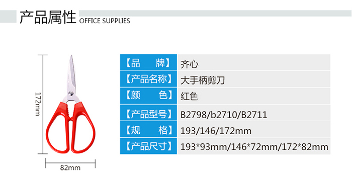 齊心(COMIX) B2711 不銹鋼剪刀 172mm 紅色
