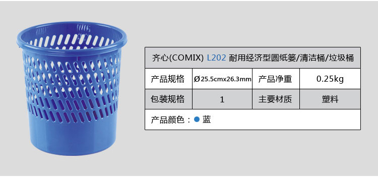 齊心(COMIX) L202 耐用經(jīng)濟型圓紙簍 直徑25.5cm 藍(lán)色