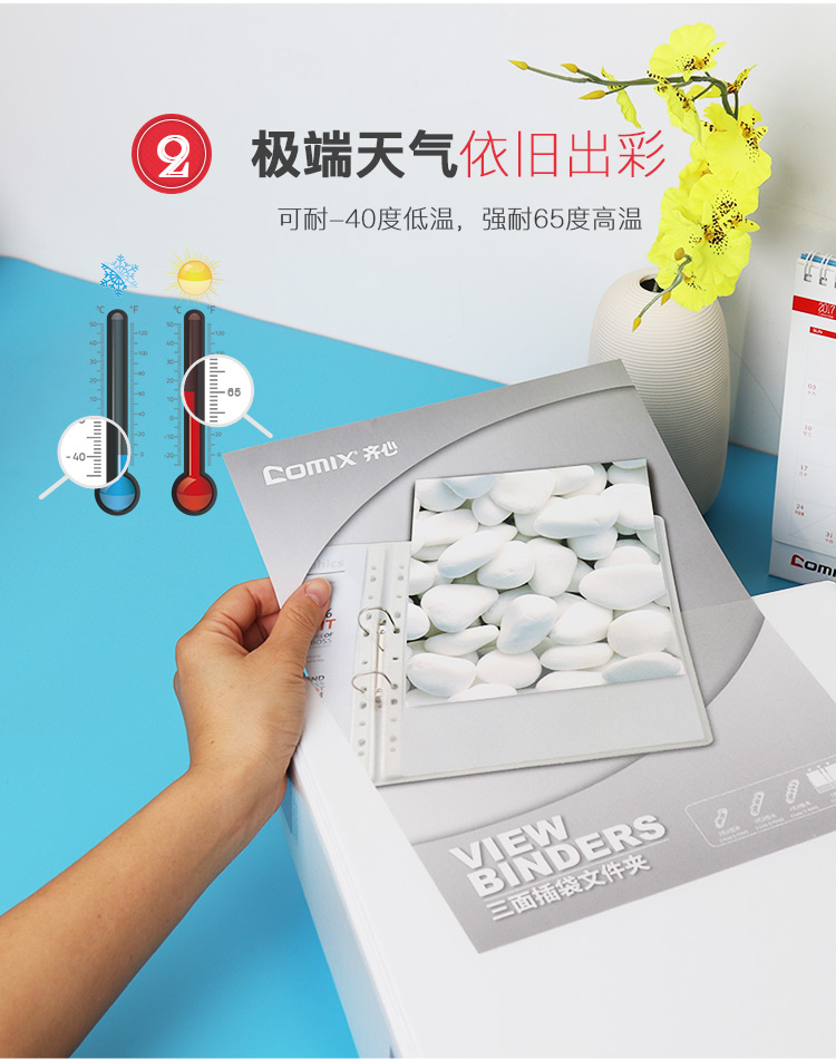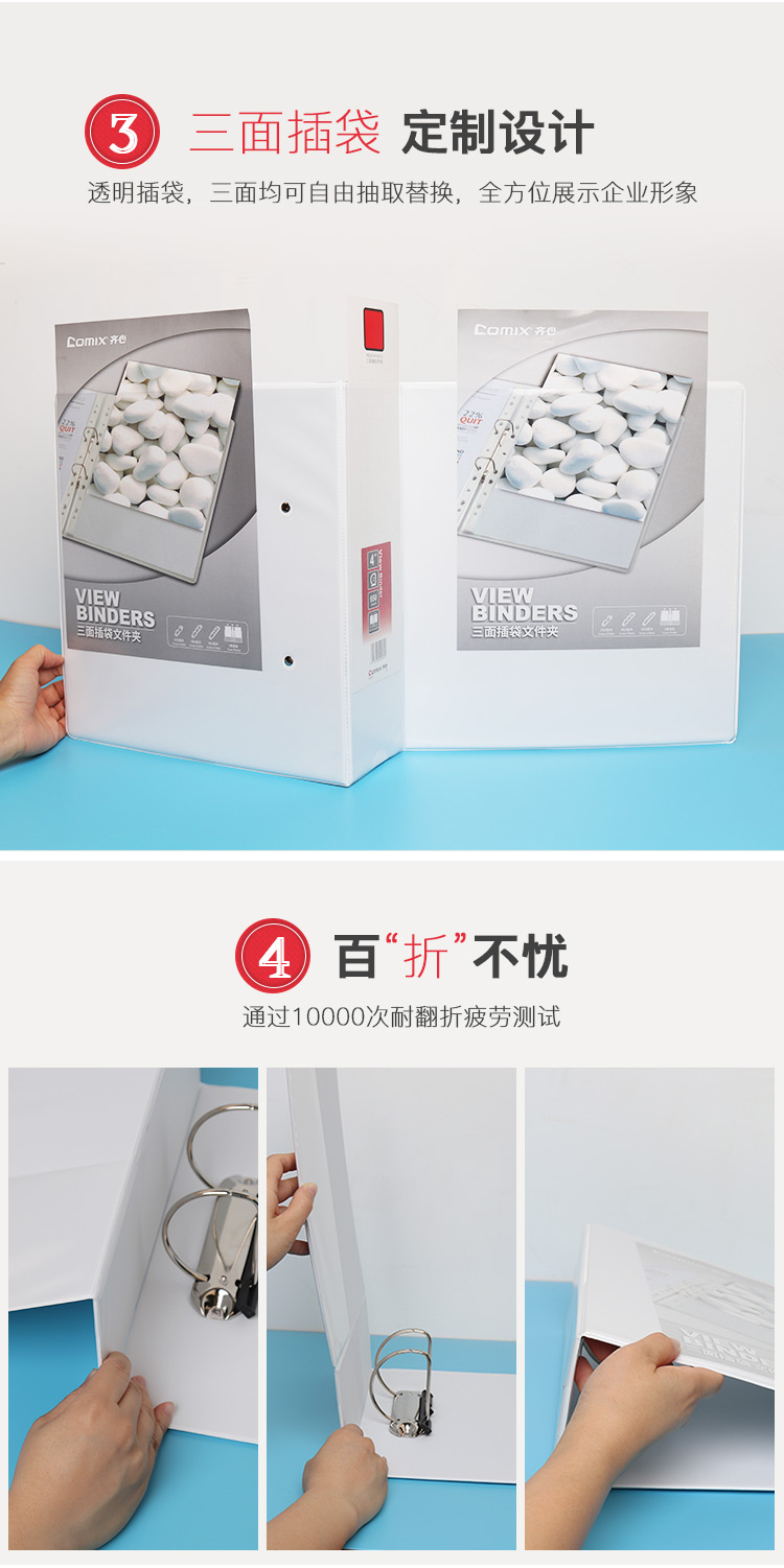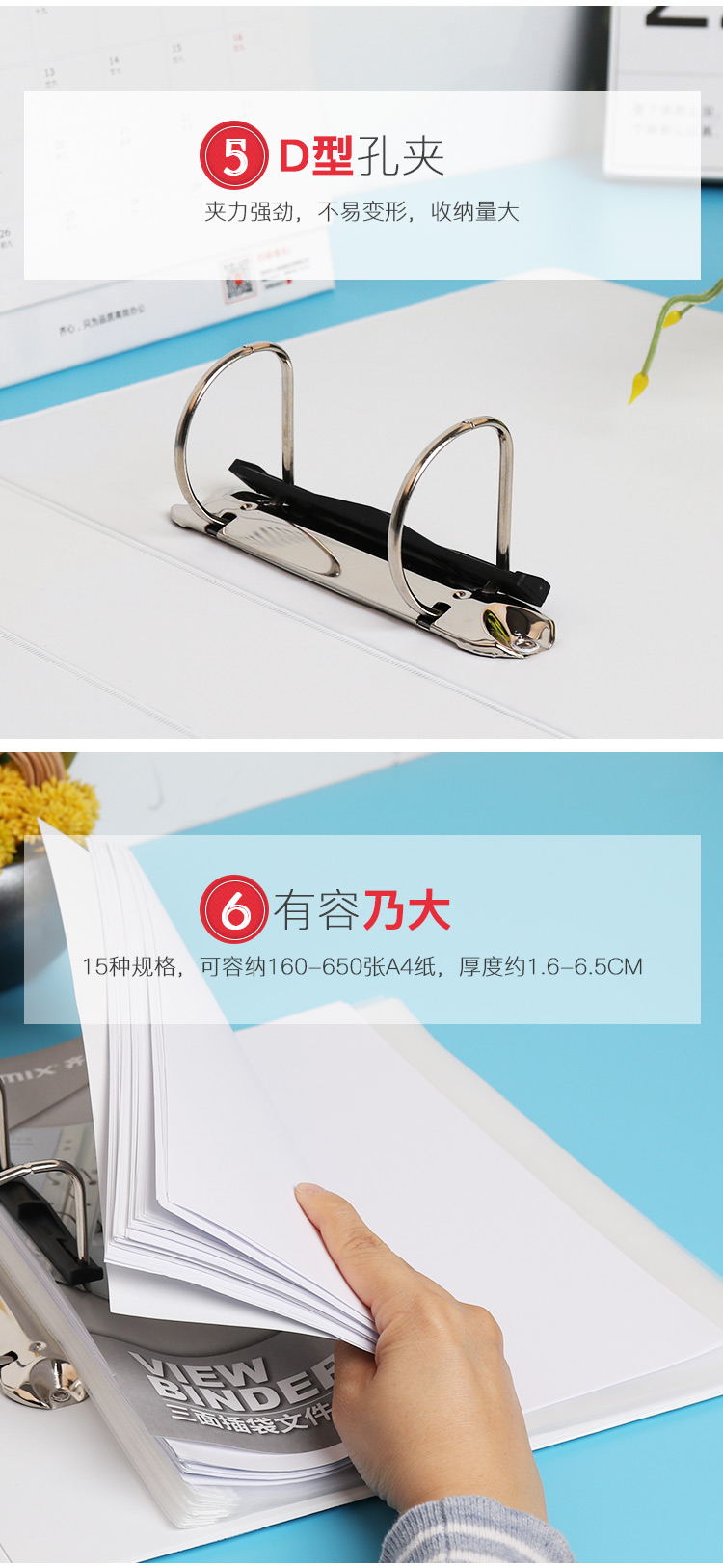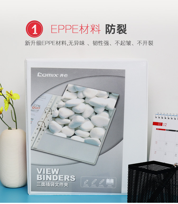 齊心(Comix)A0212 美式三面插袋2孔D型文件夾 A4 白色 1.5英寸