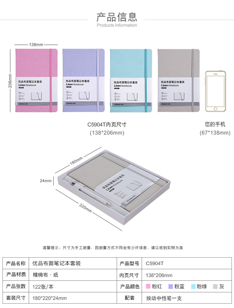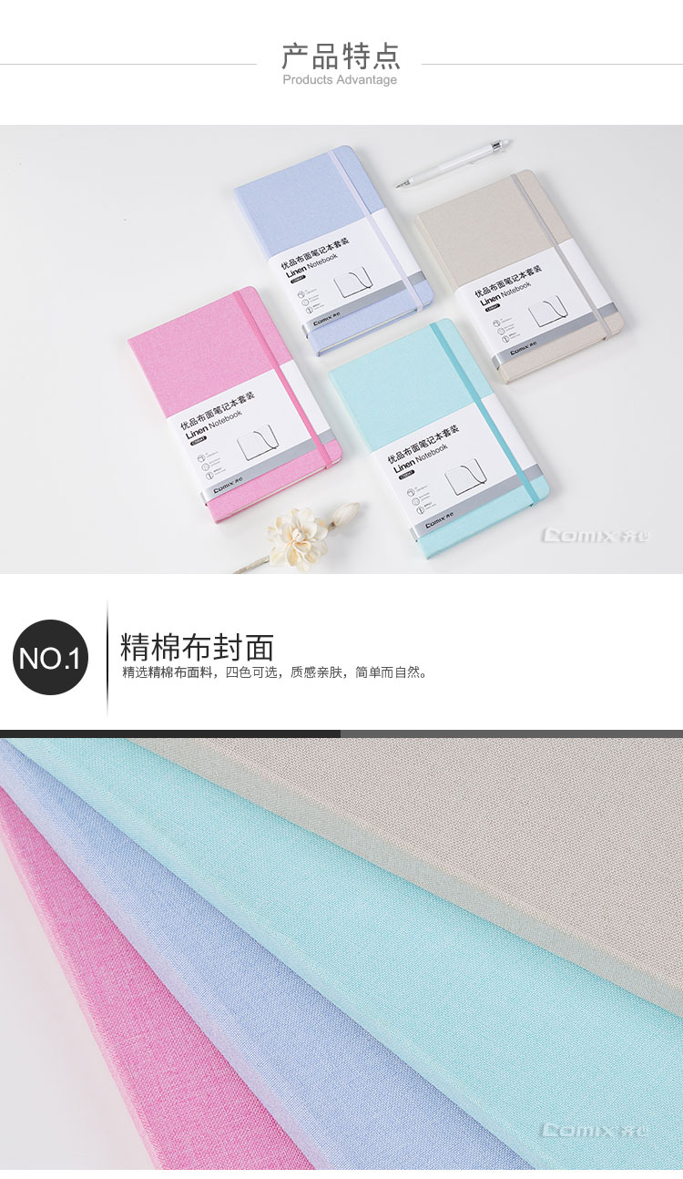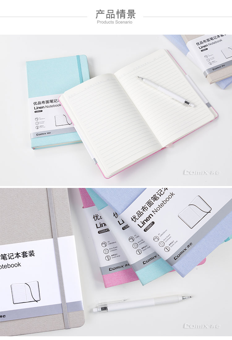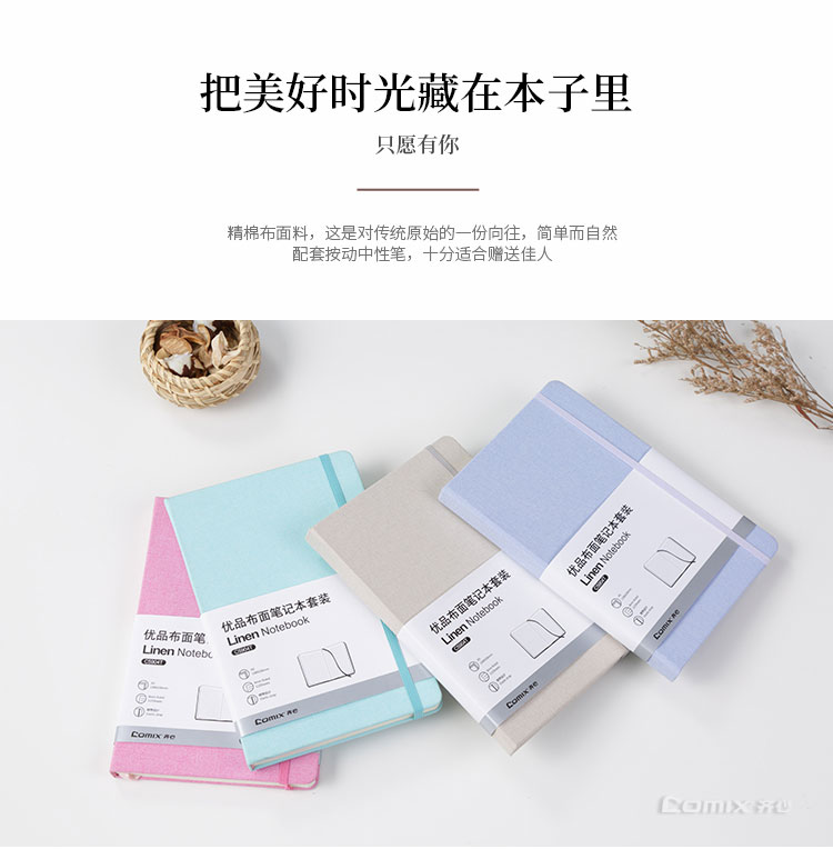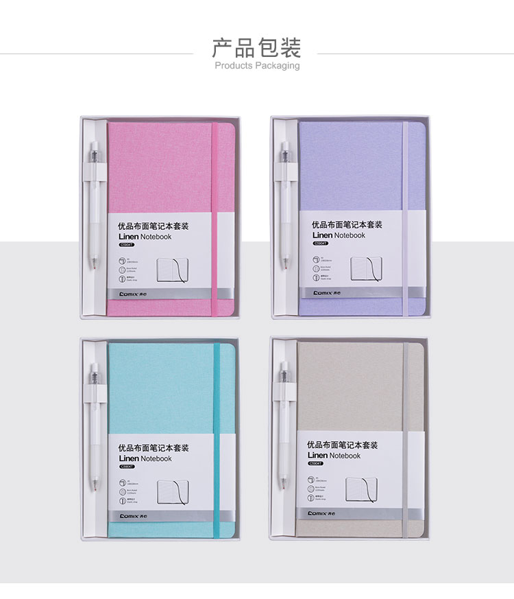 齊心(Comix) C5904T 優(yōu)品布面筆記本套裝 A5 混色 122張
