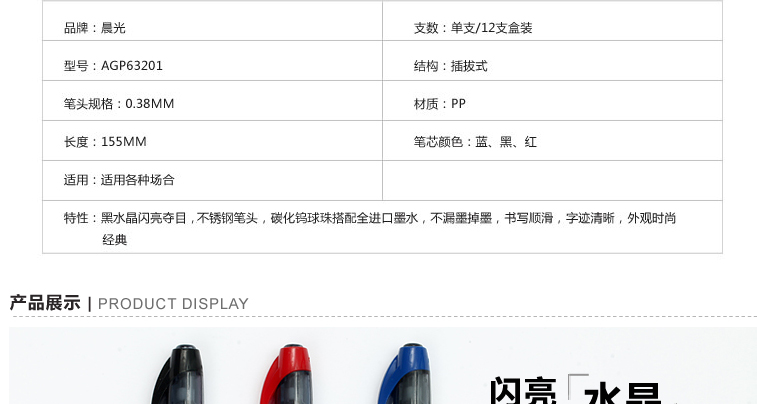 晨光(M&G) AGP63201 中性筆 0.38mm 黑色 12支/盒