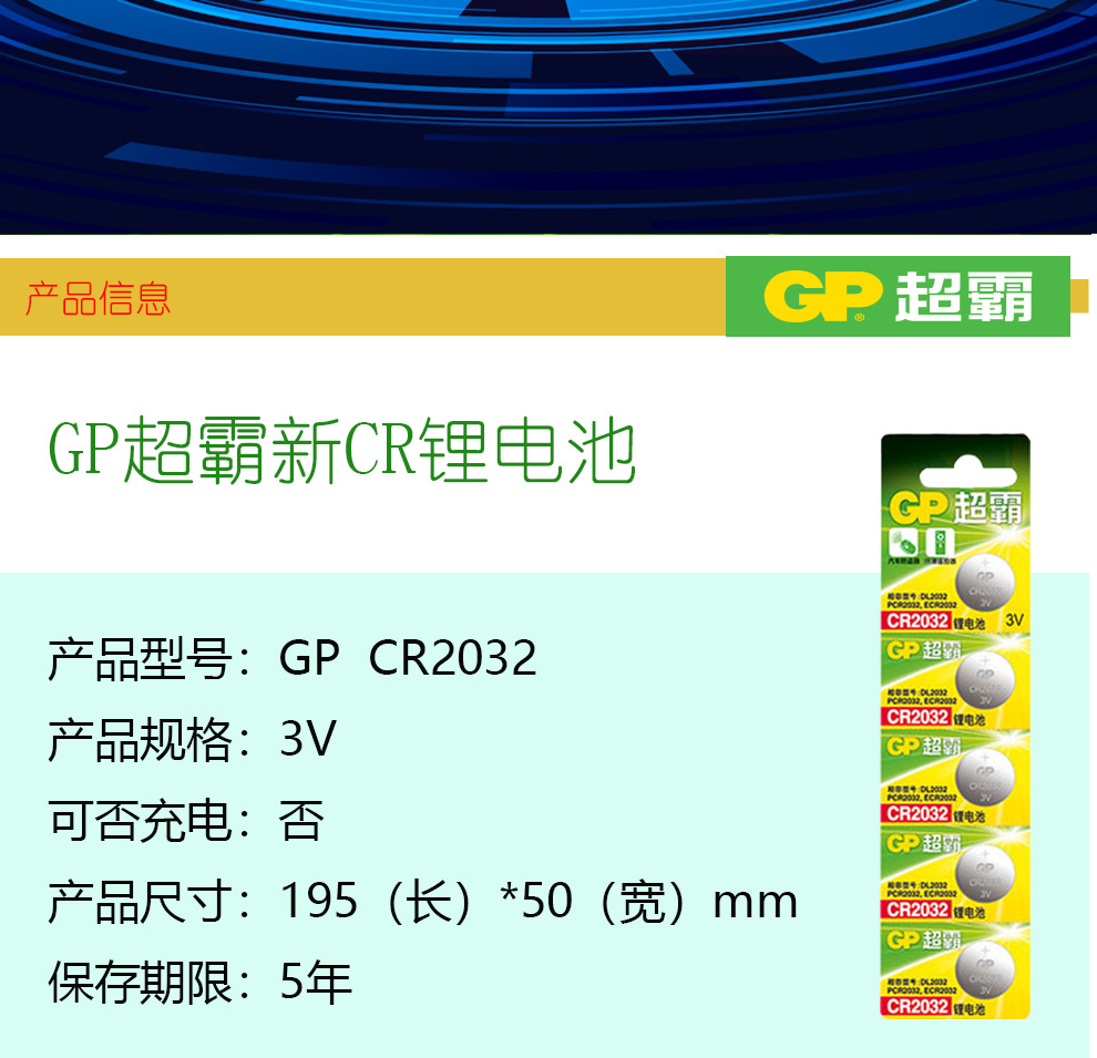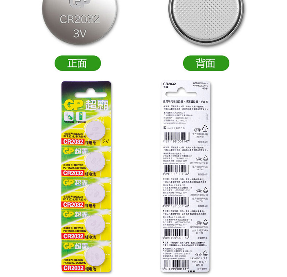 超霸(GP) CR2032 紐扣電池 3V 1粒/卡