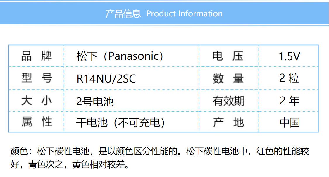 松下(Panasonic) R20NU/2S 1號碳性電池 1.5V 藍色 2節(jié)/卡