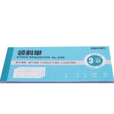 得力(Deli) 3488 三聯(lián)無碳復(fù)寫領(lǐng)料單 20組/本 藍(lán)色