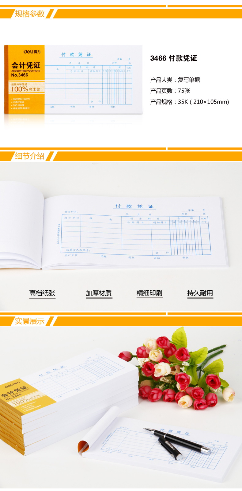 得力(deli)3466 付款憑證 210*105mm 白色 75頁(yè)