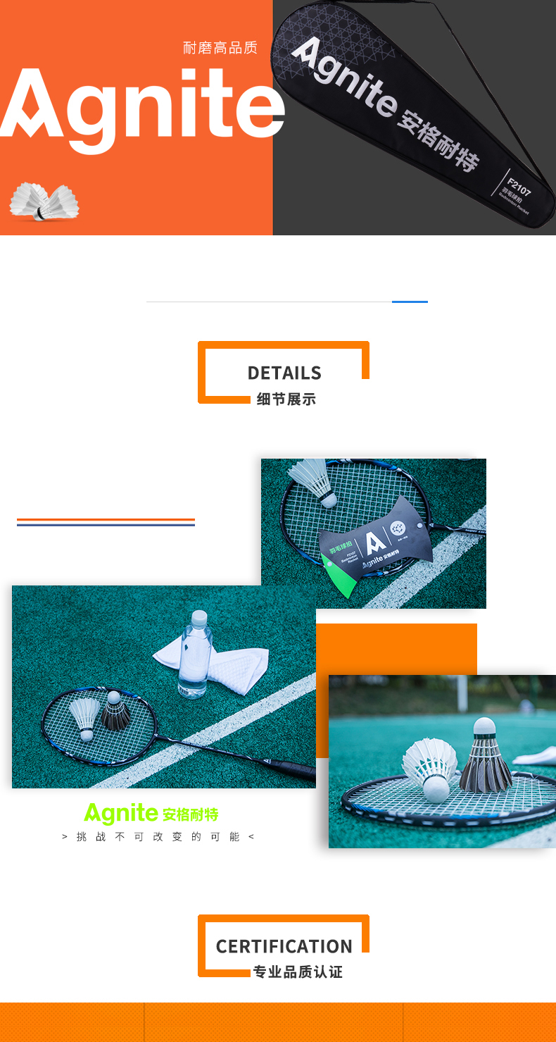 安格耐特(Agnite) F2107 羽毛球拍 單拍裝