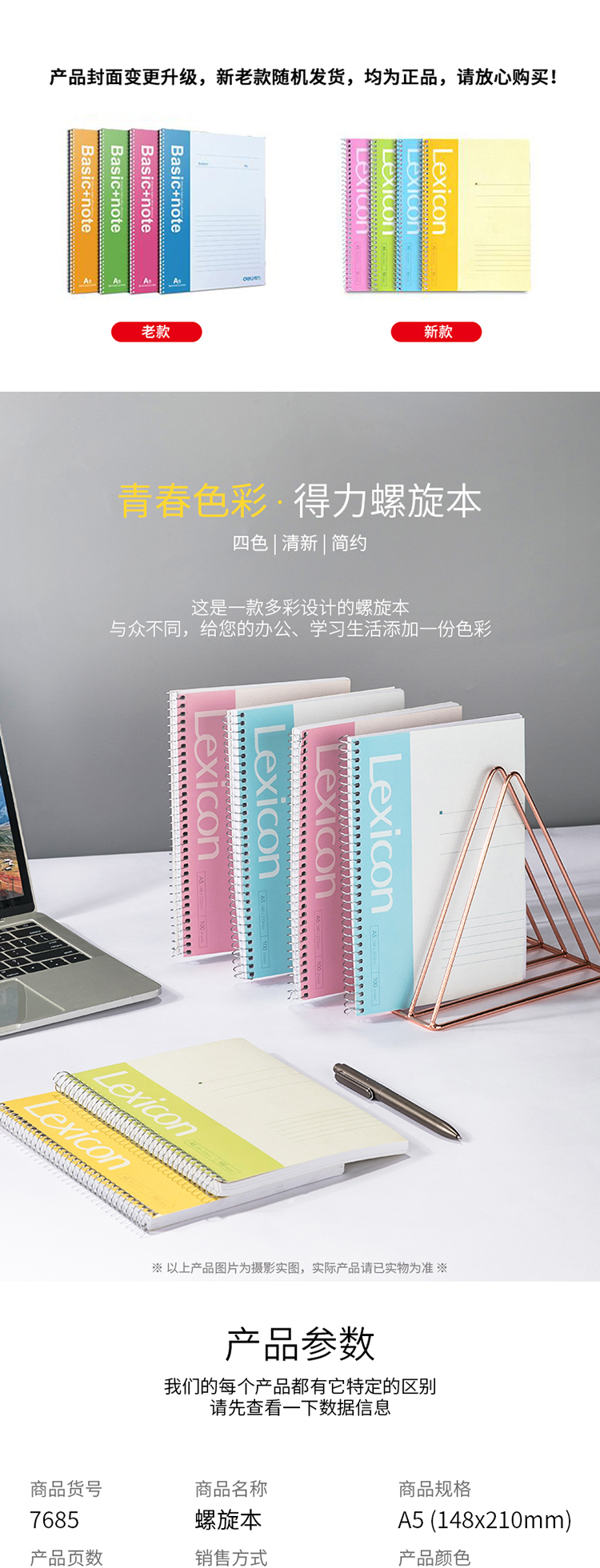得力 7685 螺旋裝訂本 A5 混色 100頁