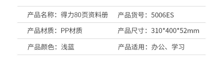 得力 5006ES 資料冊(cè) A4 藍(lán)色 80頁