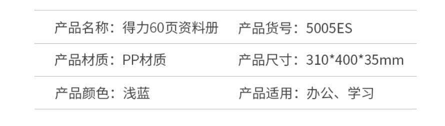 得力 5005ES 資料冊(cè) A4 藍(lán)色 60頁(yè)