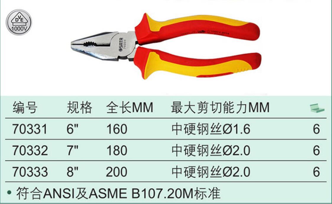 世達(dá) 70332 VDE絕緣耐壓鋼絲鉗 7寸