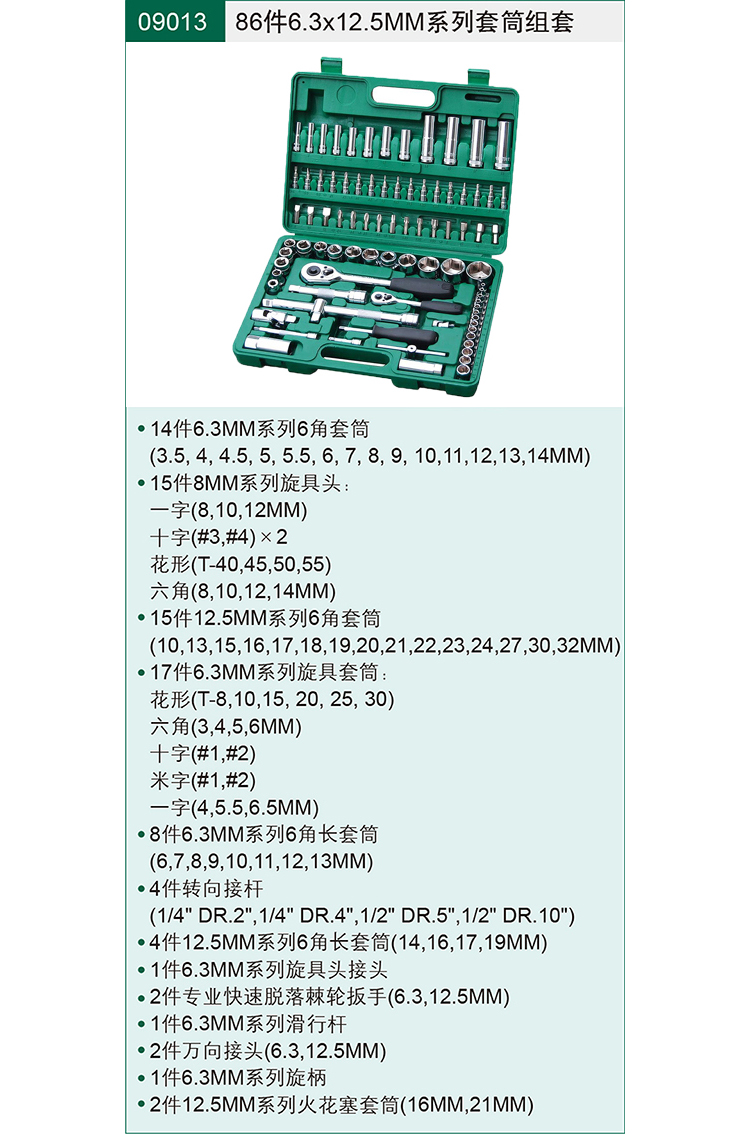 世達(dá) 09013 86件6.3*12.5MM系列套筒組套