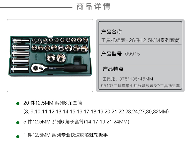 世達(dá) 09915 26件套12.5mm系列套筒組套