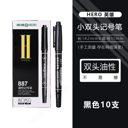 英雄 887 小雙頭油性記號(hào)筆 黑色 10支/盒