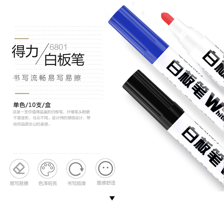 得力 6801 白板筆 2.0mm 紅色 10支/盒