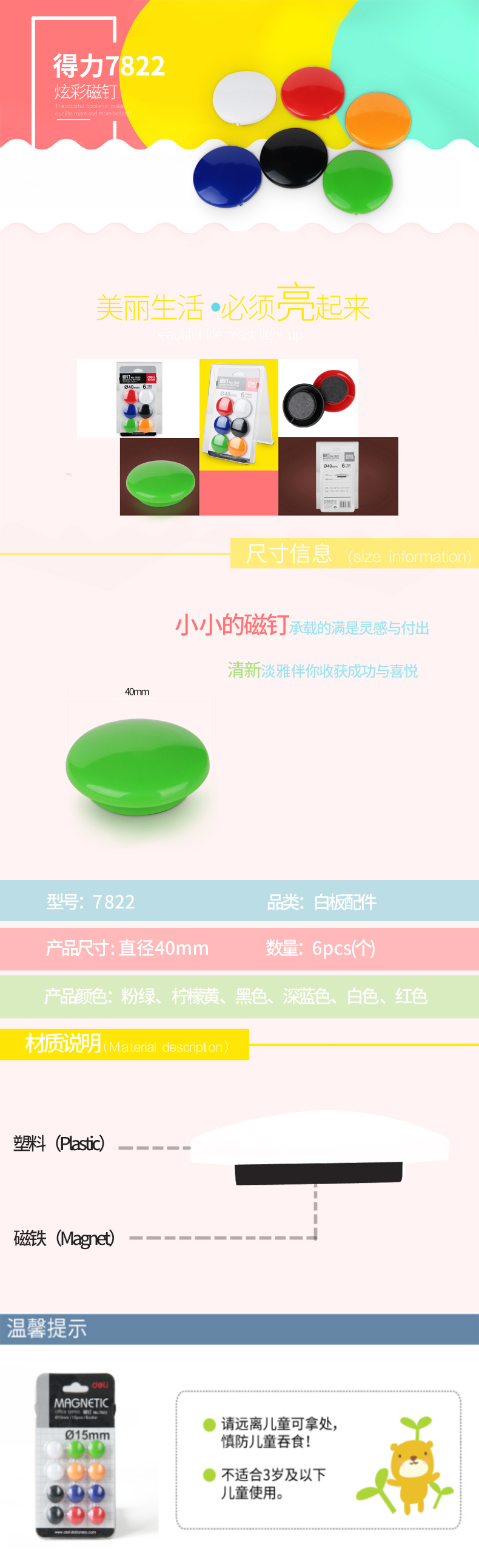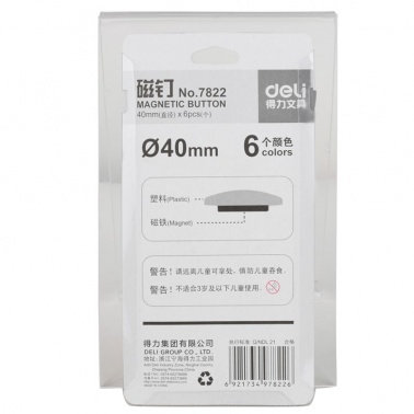 得力 7822 磁釘 Ф40mm 混色 6個(gè)/卡