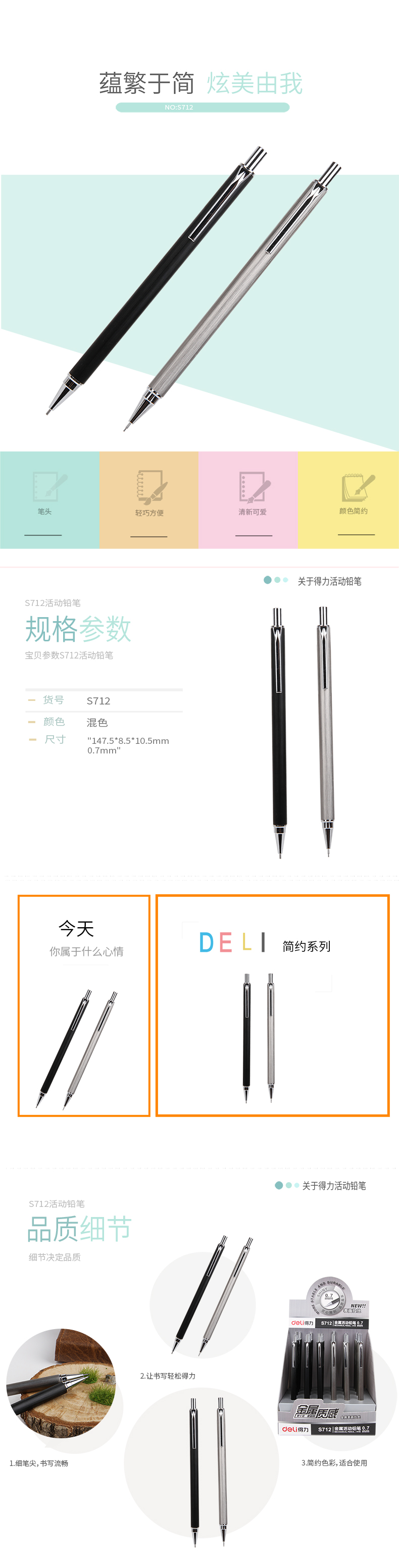 得力 S712 金屬活動(dòng)鉛筆 0.7MM 混色
