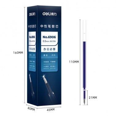 得力 6906 中性筆芯 0.5mm 彈簧頭 墨藍(lán)色 20支/盒
