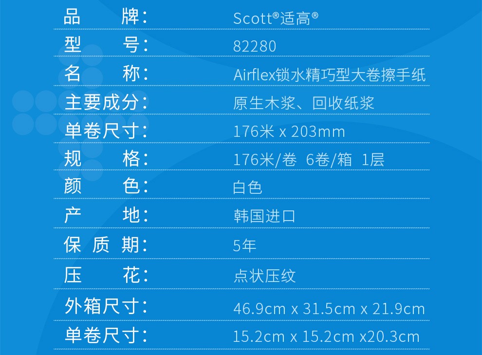 金佰利 適高/Scott 82280 精巧型大卷擦手紙176.7m 6卷/箱 配69530分配器使用