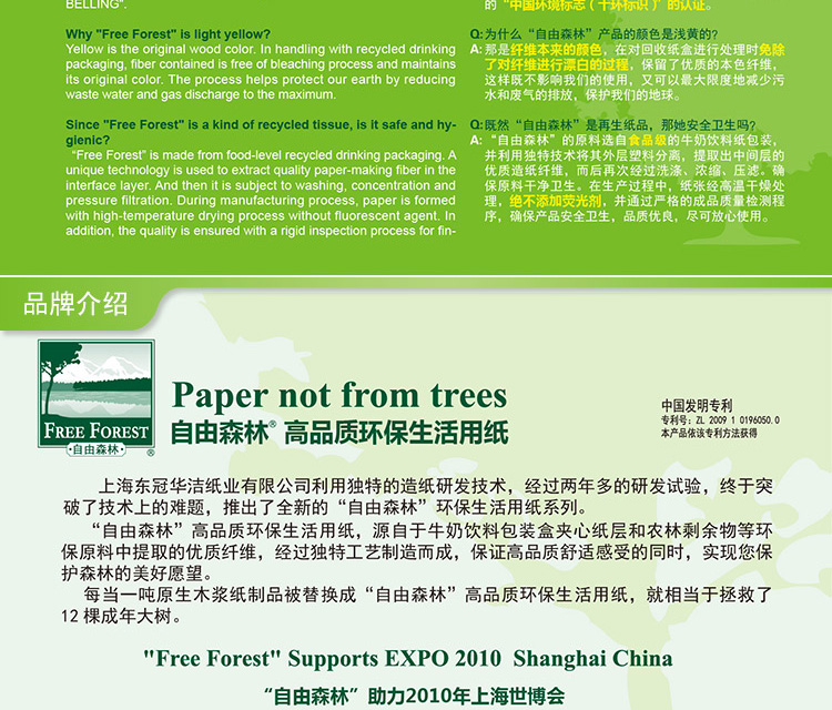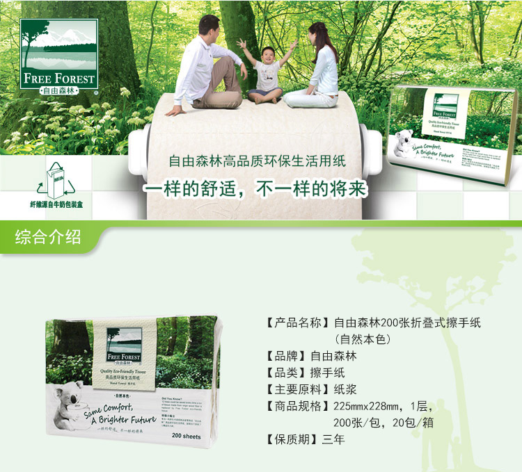 潔云 S5690201/S5691101 自由森林折疊擦手紙(自然本色) 200張/包 20包/箱 按箱銷售