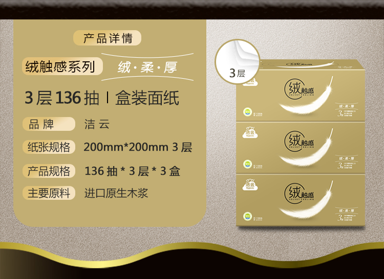 潔云 13213201 絨觸感3層136抽盒裝面紙 3盒/提 16提/箱 按箱銷售
