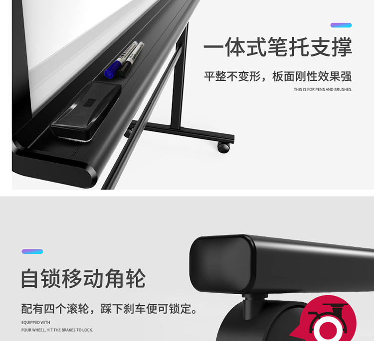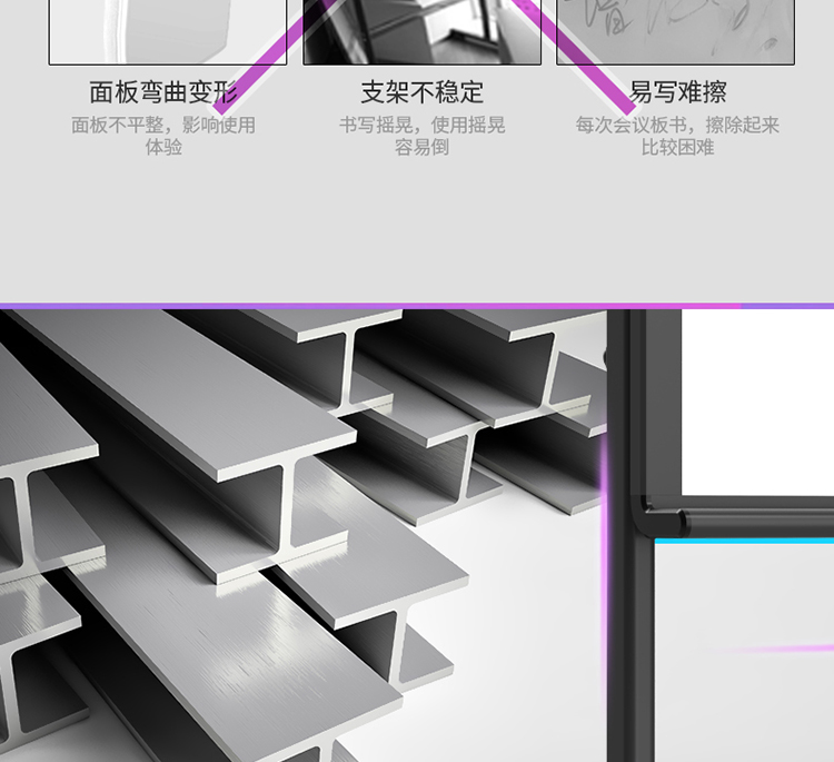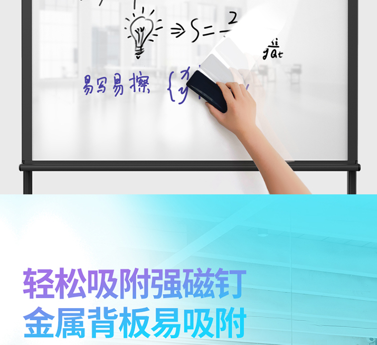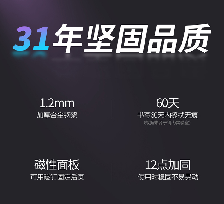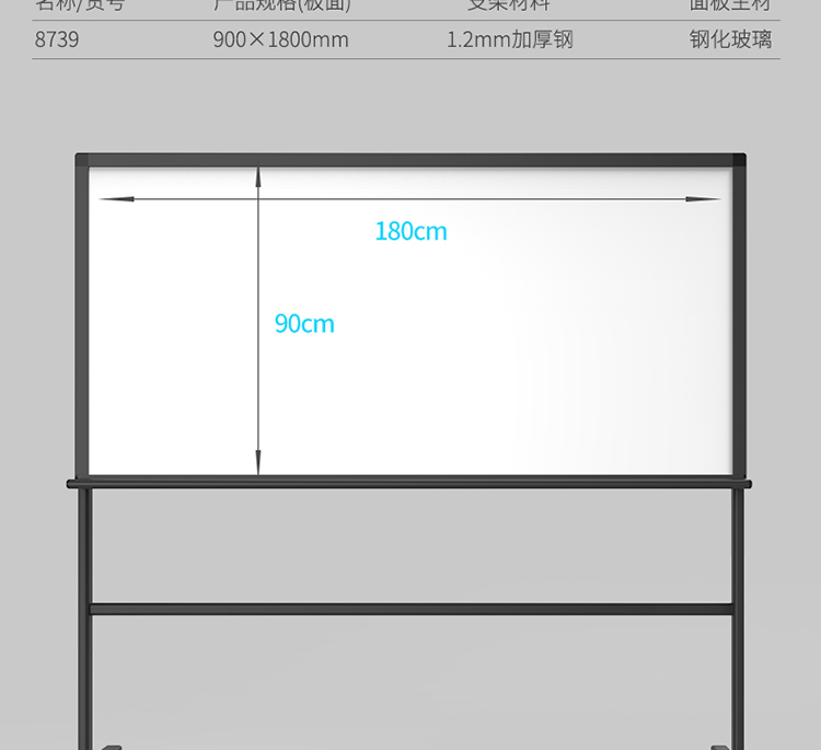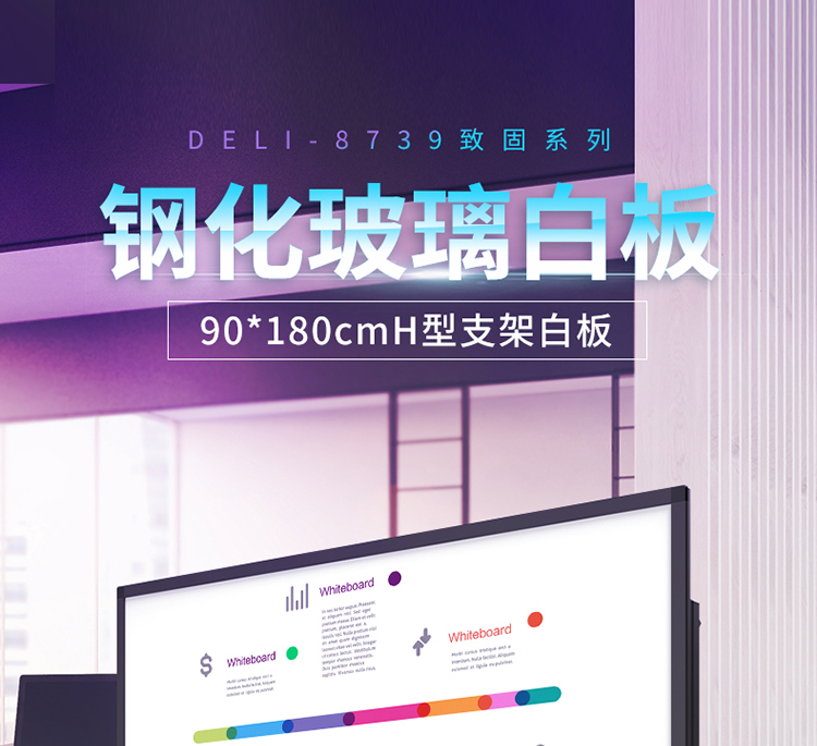 得力 8739-H型架磁性玻璃白板1800*900mm 灰色