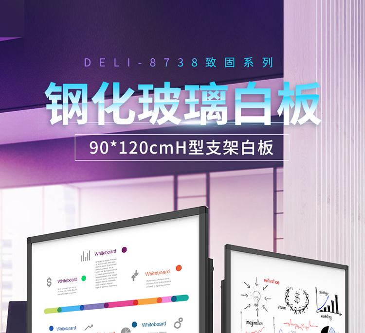 得力 8738_H型架磁性玻璃白板900*1200mm 灰色