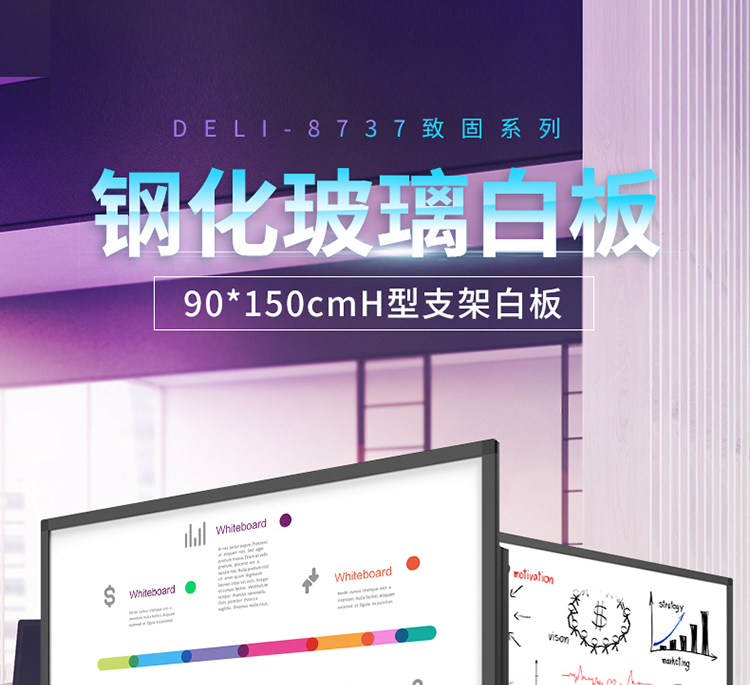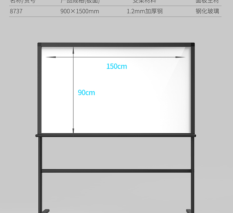 得力 8737_H型架磁性玻璃白板900*1500mm 灰色