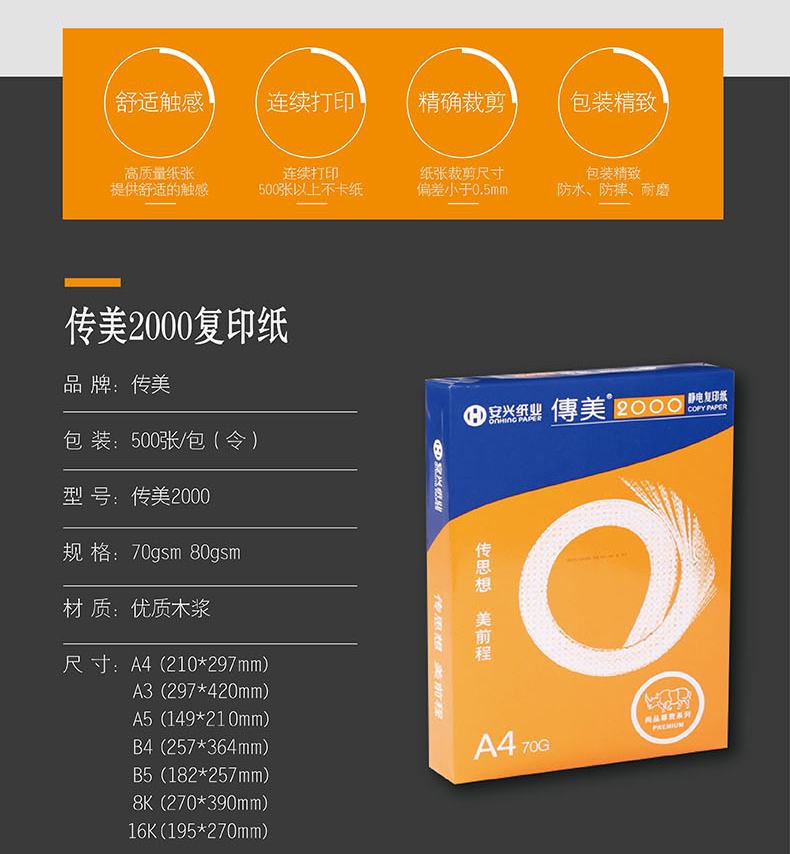 傳美 2000型 復(fù)印紙 B5 70G 5包/箱 白色 按包銷售