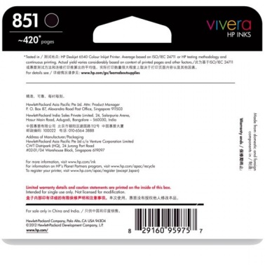 惠普 C9364ZZ 851號 黑色墨盒(適用HP Officejet100/150/H470b/K7108/6318 ,Photosmart2578/C4188)