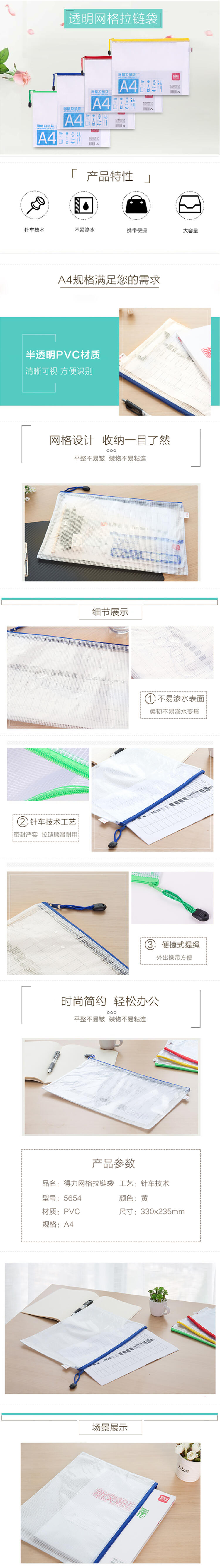 得力 5654 透明網(wǎng)格拉鏈袋 A4 混色 10個/包 按包銷售