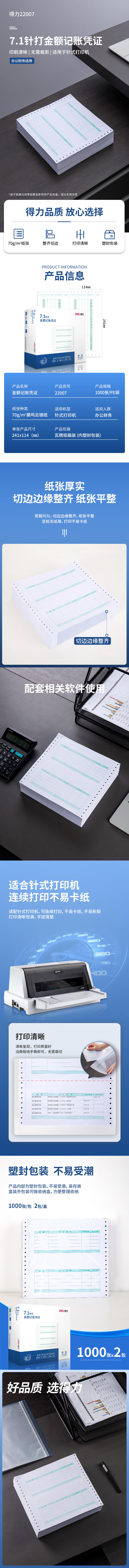 得力 220077.1 針打金額記賬憑證 241*114mm 混 2000張/盒