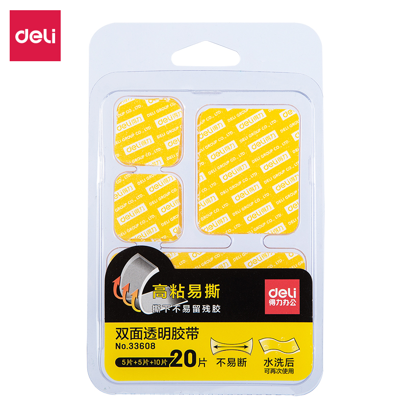 得力 33608 雙面透明膠帶混裝 透明 20片/包