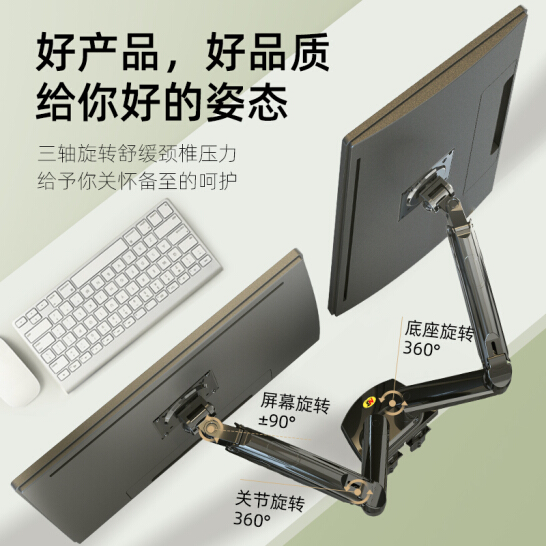 NB F160 雙屏拼接顯示器支架 黑色 適用 17-27英寸