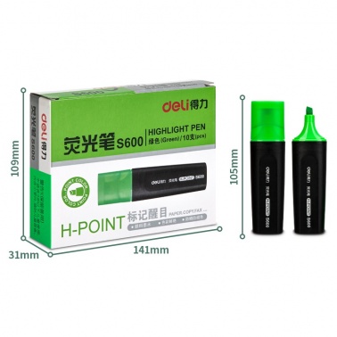 得力 S600 方頭熒光筆 5.0mm 綠色 10支/盒