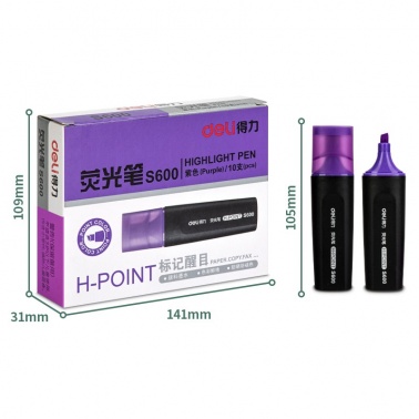 得力 S600 方頭熒光筆 5.0mm 紫色 10支/盒