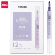 得力 S731 單頭細(xì)桿熒光筆 紫色 12支/盒