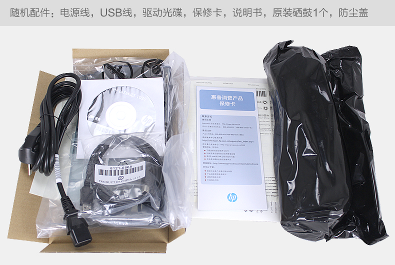包裝箱內(nèi)包含的物品:HP LaserJet 1020 Plus 激光打印機(jī),HP LaserJet 硒鼓、入門指南、打印機(jī)文檔與軟件 CD-ROM、電源線 耗材 HP 專業(yè)激光紙 HP 激光皮紙 HP 黑白激光打印機(jī)硒鼓